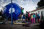 Gaia (Mother Earth) Ball is the brainchild of Catalonian climber and master builder Txema Gomez. The project was funded and spearheaded by Marc Le Menestrel a French climber and sustainable business expert. The message from the ball “healing each turn” and “it’s a game” is an open invitation for movement by climbing on the ball. The speed of the rotation is controlled by a rope-brake system that can also be fixed to create a static climbing device.